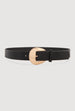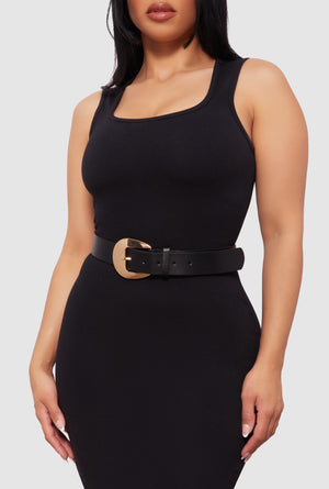 Metallic Round Buckle Faux Leather Belt - black