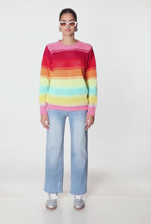 Daisy Crochet Chevron Striped Sweater - multi color