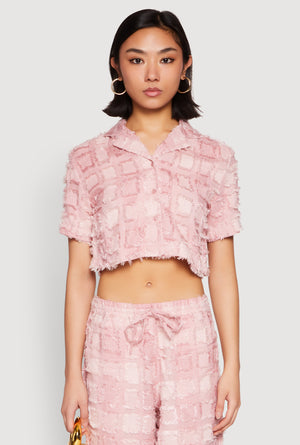 Upgrade your casual wardrobe with the Spoon Jeans Plaid Frayed Cropped Shirt. Perfect for adding a touch of effortless cool to any outfit, this stylish top combines a classic fit with a trendy cropped hem. The short sleeves and shirt collar give it a timeless vibe, while the frayed details add just the right amount of edge. Whether you're heading out for a day with friends or dressing up a laid-back look, this shirt is your new go-to piece for versatile, affordable fashion that makes you stand out.