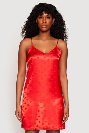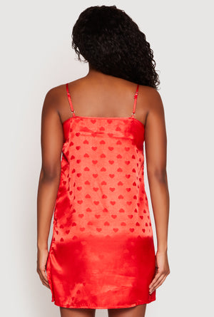 Satin Heart Print Cami Nightgown with Robe - red